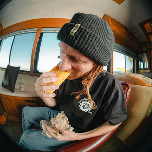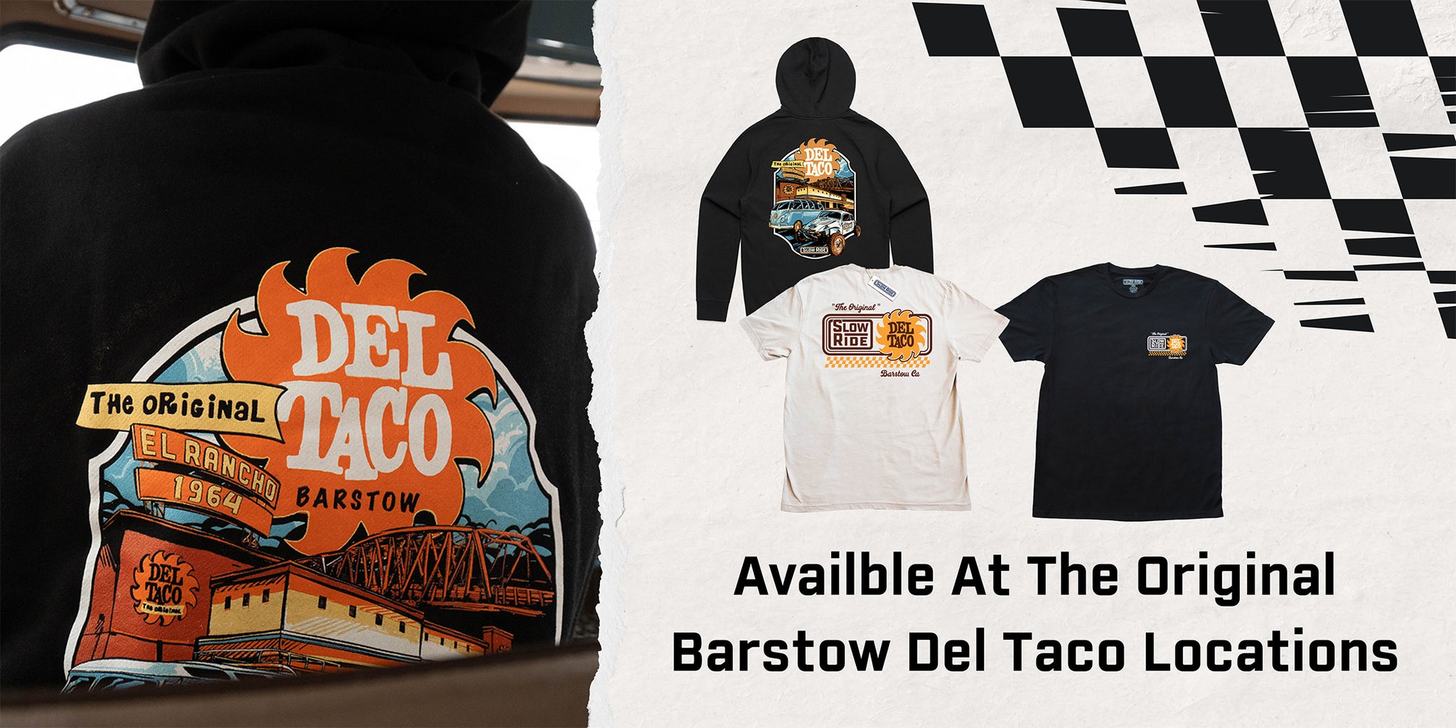 We are grateful to be able to work on a project with the founder of Del Taco, Ed Hackbarth, and get to hear some of his stories. Ed is somebody that I truly look up to and admire for his leadership style and work ethic.We are pleased to announce our Original SlowRide/ Barstow Del Taco collaboration. We are releasing it at King of the Hammers and it will be available in all Barstow Del Tacos as well as SlowRide stores.