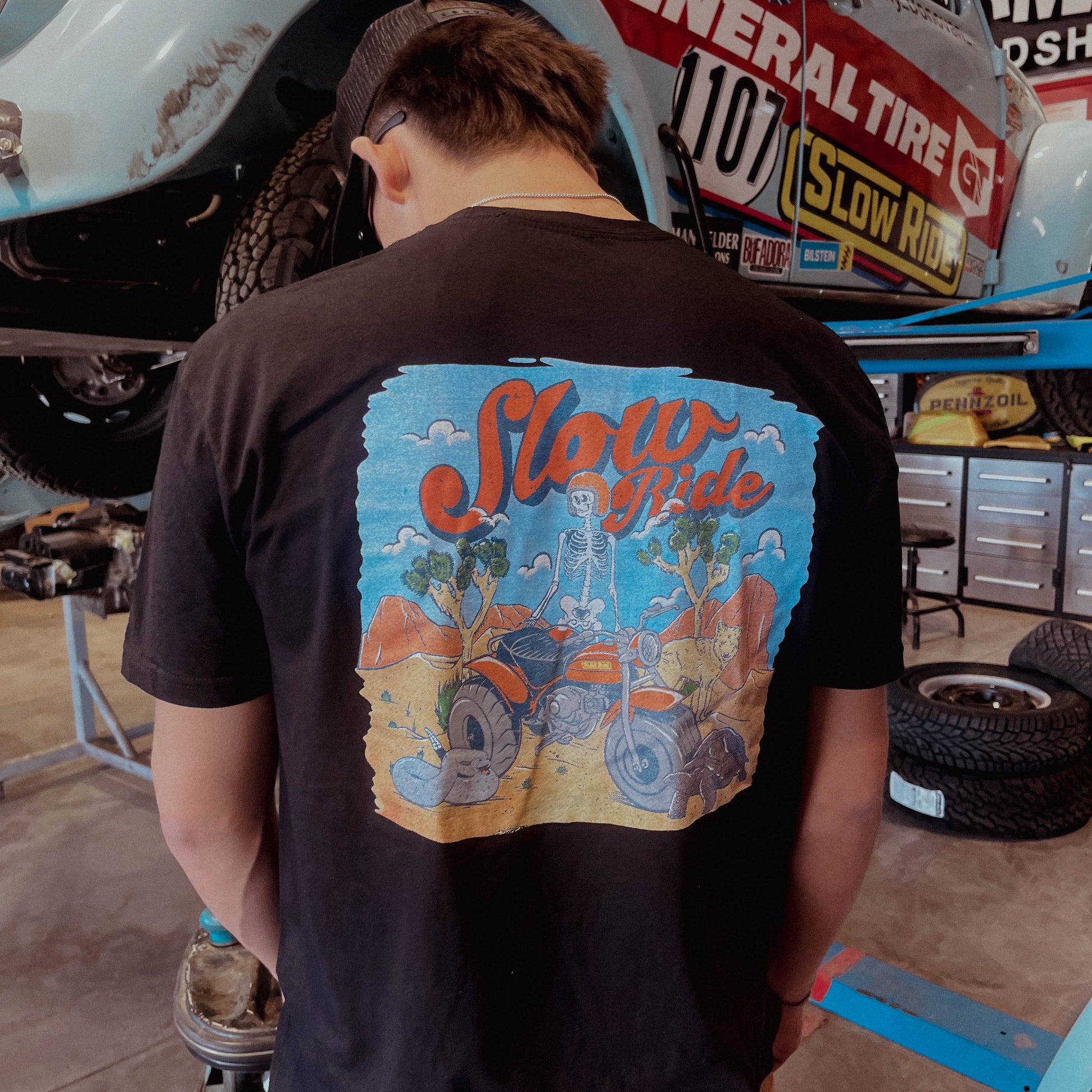Slow Ride makes clothing for the driven. Founded in the desert of Hesperia, California by Donny Donovan in 2007. He is the Driver of class 11 car, #1107. We are the brand behind the Original Slow Ride Garage and the rising Slow Ride Racing Team.